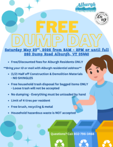 - Alburgh Transfer Station – 260 Dump Rd (open Wednesdays & weekends)
