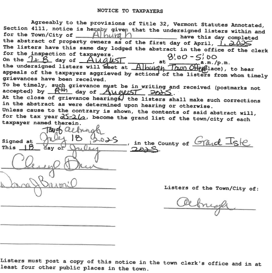Grievance applications can be found here: 2025 Application. For questions, please call the listers at 802-796-3468 ext 4 or email [email protected]